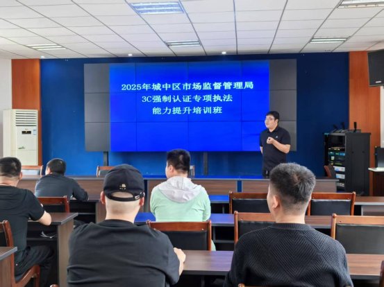为强化3C认证产品监管,破解网吧及电竞酒店电脑认证执法难题,2025年4月10日下午,柳州市城中区市场监督管理局组织开展“3C强制认证专项执法能力提升培训”,辖区各街道市场监管所执法人员、业务股室工作骨干及相关市场主体代表30余人参训。