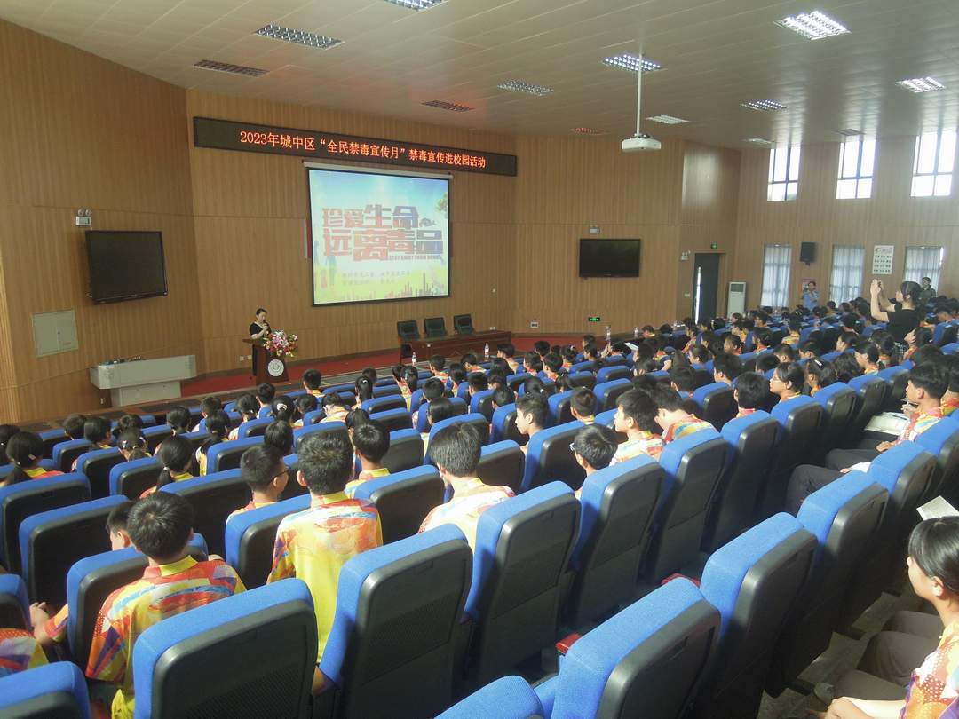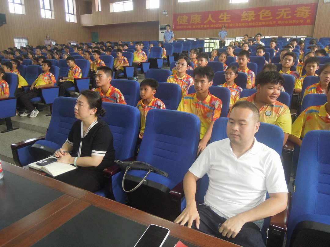 桂中派出所杨警官为学校初一年级250多名学生宣讲“青少年毒品预防教育”报告,区关工委五老宣讲员彭先姣宣讲“珍爱生命 远离毒品”报告。