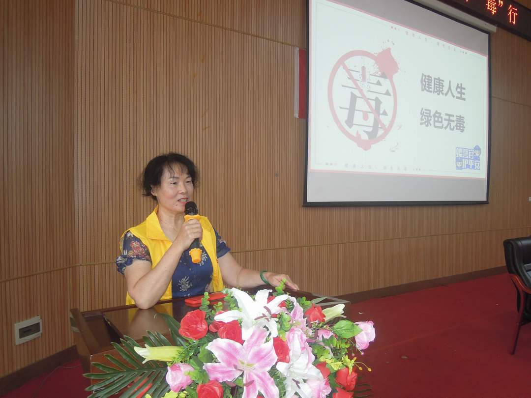 区教育局肖雪霞副局长在活动上讲话,她说:今年的禁毒宣传月的主题“健康人生 绿色无毒”,吸食毒品不仅严重损害自身的身体健康,而且还会给家庭带来灾难,引发违法犯罪行为,危害社会安全。同学们要学习禁毒知识,领会禁毒活动的意义,要从自身做起,自觉抵制毒品,提高自我保护能力,倡导健康的生活方式,做有理想信念和责任心的好少年。