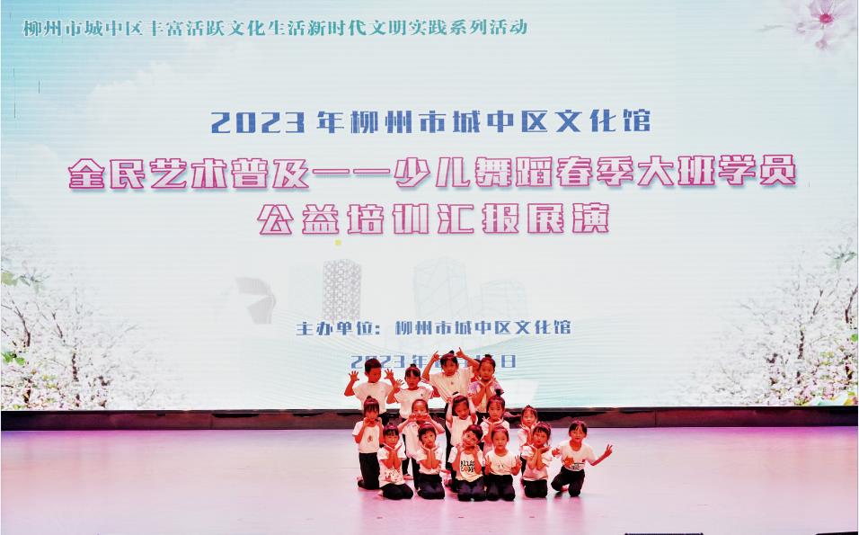 6月17日上午,由柳州市城中区文化体育广电和旅游局主办,柳州市城中区文化馆承办的2023年柳州市城中区全民艺术普及公益培训(春季)班学员成果汇报展演在柳州市城中区多功能演艺厅隆重举行。