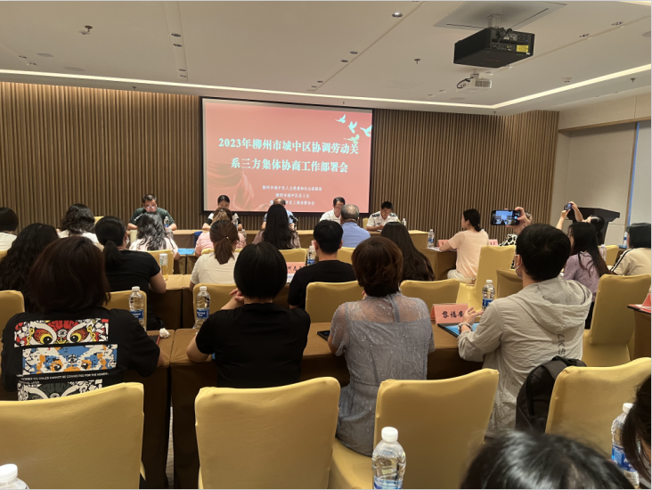 (城中区总工会讯 通讯员杨丹凤报道、靳梓琦摄影)6月14日,柳州市城中区协调劳动关系三方召开专题工作会议。城中区总工会、区人力资源和社会保障局、区工商业联合会的有关领导、业务部门负责人和相关工作人员参加了会议。