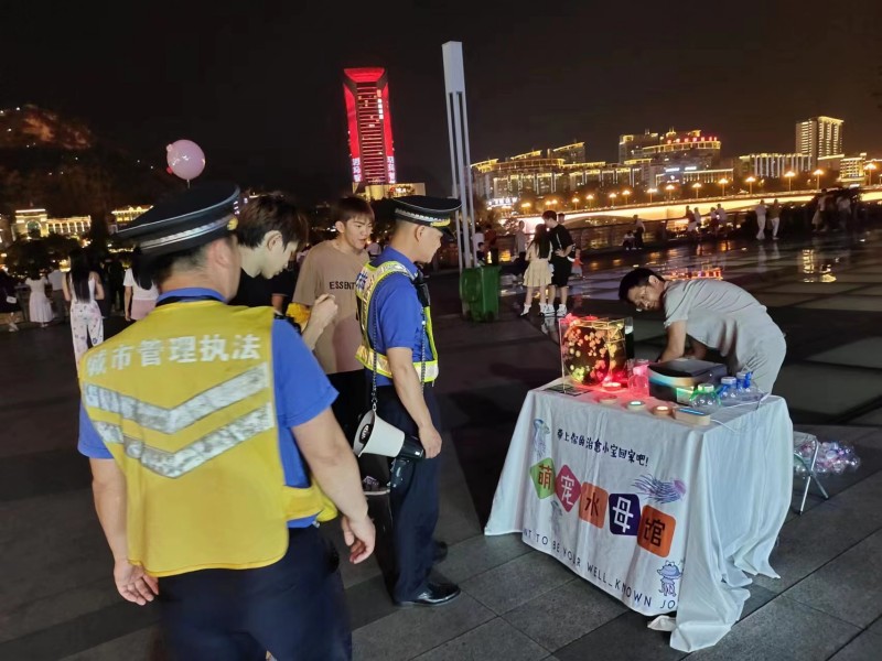 为此,城中区城管执法局城中特勤中队每天到在亲水平台值守,对占道摆摊的小贩进行教育宣传劝阻。然而,亲水平台人多路长,加上小摊都是“流动型”的,哪里人多就往哪里挤,在此值守的城管队员分身乏术,难以兼顾,也难达到宣传劝离的效果。