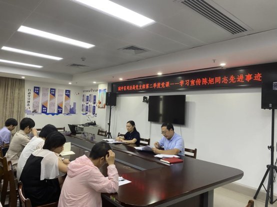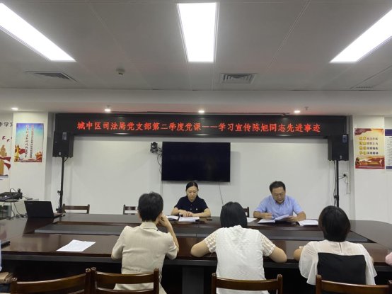 为了深入学习贯彻习近平新时代中国特色社会主义思想,加强党性教育,激励广大干警勇往直前、忠诚担当,6月20日,城中区司法局在813会议室召开了第二季度党课学习活动,主题为“学习‘全国司法行政系统一级英雄模范’陈旭同志先进事迹”。