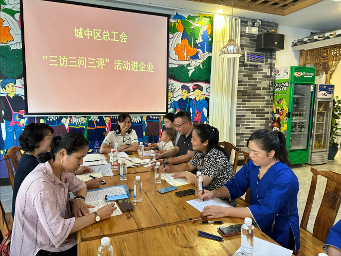 (城中区总工会 通讯员杨丹凤报道、摄影)近日,由城中区总工会党组成员、副主席冯玮带队,走访辖区内柳东卫生院、鹿园社区、侗寨花、天龙湾璞悦酒店、蒙牛乳业、公园路幼儿园、城中区人民法院等9家企业(基层、社区)、机关单位。此次调研的主题为“缓解生活及职场压力,提高女职工生活幸福指数”,通过问卷、现场走访、座谈会、个人访谈等多种形式以工会女职工工作为重点详细了解企事业单位工作开展情况。