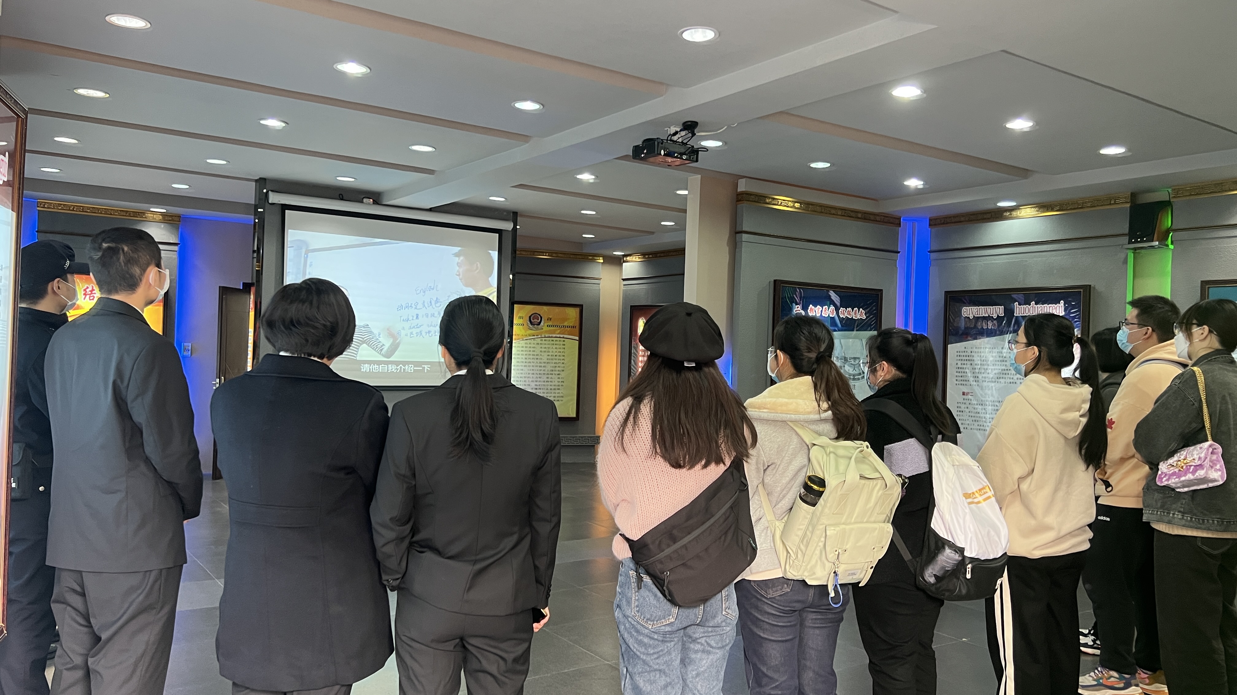 庭审后,大学生们应邀参观预防未成年犯罪警示教育基地,法院法官们与大学生们进行了亲密的交流互动,就如何防范和应对违法犯罪行为等知识点进行重点讲解介绍,让大学生们直观地了解违法与犯罪的联系与区别等知识。与此同时,法官们紧密结合庭审案件的情况,向大学生们阐释了劳动者和用人单位之间在实际工作中的基本权利和义务,以此提示未来将走上工作岗位的大学生们要增强法律意识,知晓法律规定,依法使用法律武器维护自身的合法权利。