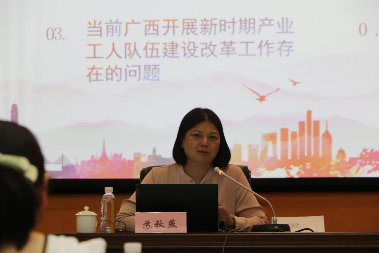 (城中区总工会讯 李贞君报道、李淼摄影)为进一步推动柳州市城中区新时期产业工人队伍建设改革工作(下面简称产改工作)的开展,促进各部门产改工作顺利完成,7月14日,由城中区总工会开展的关于产业工人队伍建设改革工作评价考核目标任务解读的培训班在城中区政府圆满举办。本次培训班特邀请自治区总工会干部学校苏秋燕作为讲师对产改工作相关参与部门和试点企业共56人进行了培训。