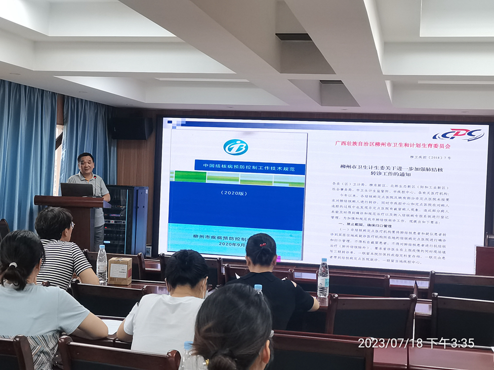 为大力提升城中区结核病防治工作质量,2023年7月18日,城中区疾病预防控制中心举办了结核病防治工作培训班。此次培训邀请了柳州市疾病预防控制中心结核病防治所专家赖文胜副主任医师前来授课,全区各医疗机构结核病防治专干约12人参加培训。