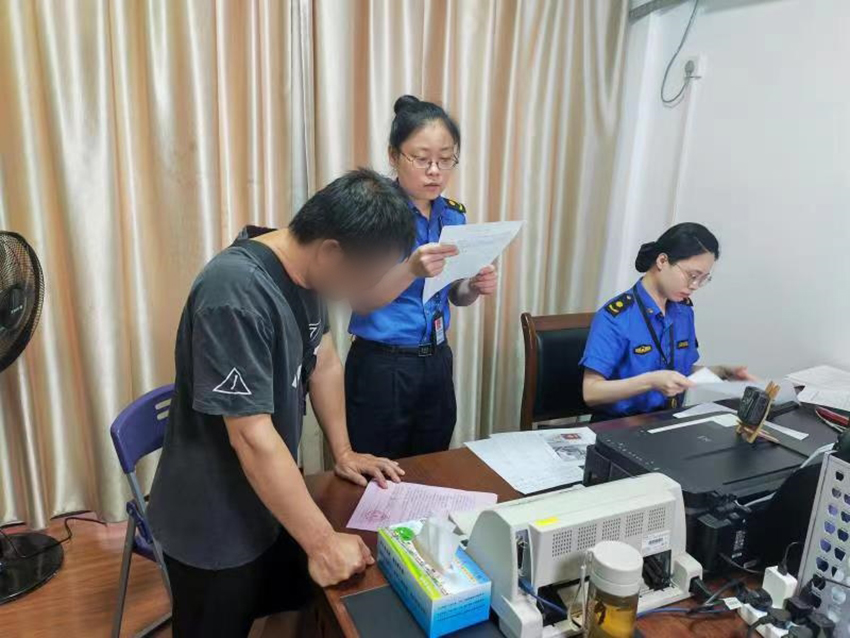 执法人员对蓝某进行了批评教育,指出其行为已经违反了相关规定,责令他立即整改,将福柳新都小区楼道间的“*********”清理干净。