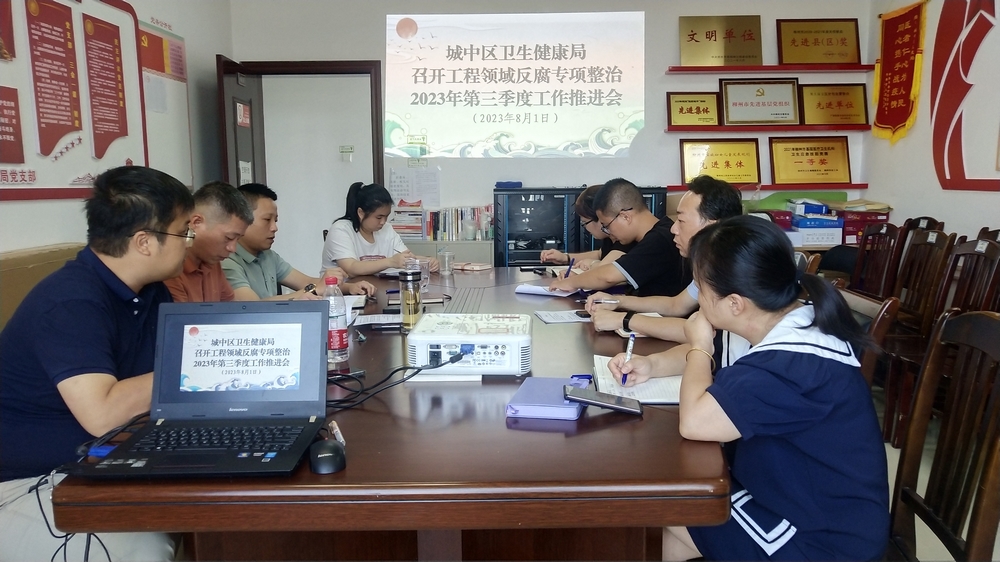 为深入推进领导干部利用职权或影响力插手工程项目谋私贪腐问题专项整治走深走实,从严抓实各项工作,确保整治取得成效,8月1日,城中区卫生健康局召开工程领域腐败问题专项整治第三季度工作会议,梳理汇总工作推进情况,分析研判推进工作存在的问题,研究部署第三季度工作重点。