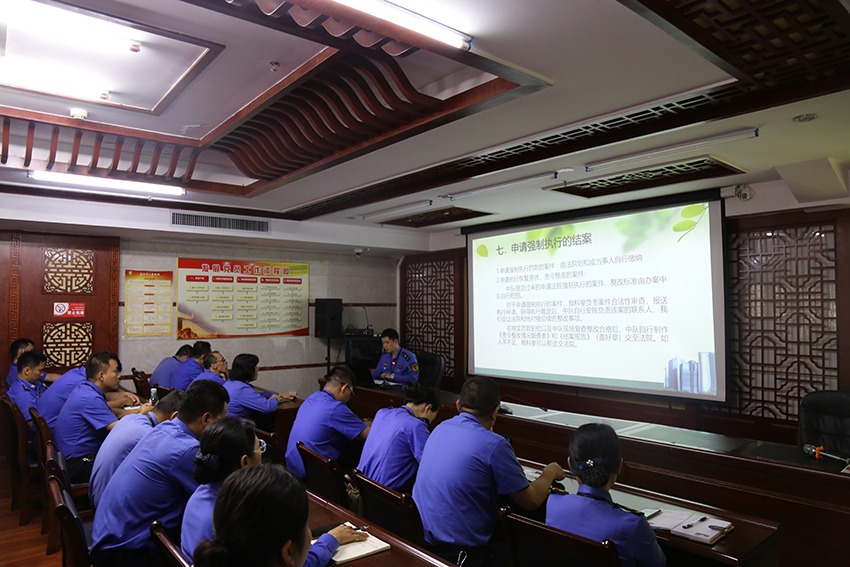 培训课上,队员们首先学习了《非诉执行案件操作实务》课程。课程是该局法制科联合驻队律师,深入执法一线,收集、整理各类在执法过程中遇到的典型案例,一一分析解释,编制而成。从务实角度出发,为一线执法队员的执法规范化提供指导。