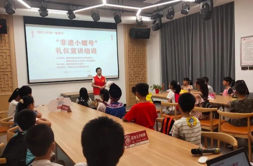 暑假期间,城中区文化馆组织开展了2023年城中区文化馆“非遗小螺号”志愿者下基层宣讲活动,11名“非遗小螺号”志愿者走进城中区文化馆、五星步行街、静兰小学、公园街道办、金泰苑社区5个场所,亲身实践,通过优美的音乐、形象的图片展示以及生动的语调与肢体语言,从柳州螺狮粉、侗族大歌、戏曲艺术、赏石文化等不同角度向辖区居民群众讲述了非遗的知识故事共计8场次。每位小志愿者宣讲各有特色,精彩的宣讲让非遗文化“活”了起来,让观众们对传统文化有了更深入的认识与了解,让志愿者们也体验到了传播非遗文化的快乐。