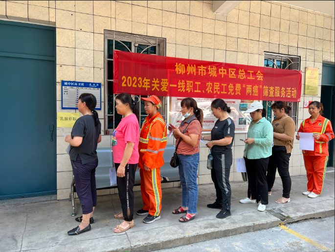 为进一步保障女职工健康权益,提高女职工的自我保护意识,做实工会服务女职工工作。由自治区总工会主办,柳州市总工会、城中区总工会共同承办的女职工免费“两癌”筛查服务活动于7月26日至27日在城中区环境卫生所举行,此次活动优先安排一线环卫女职工、女农民工、困难女职工共150人免费“两癌”体检。