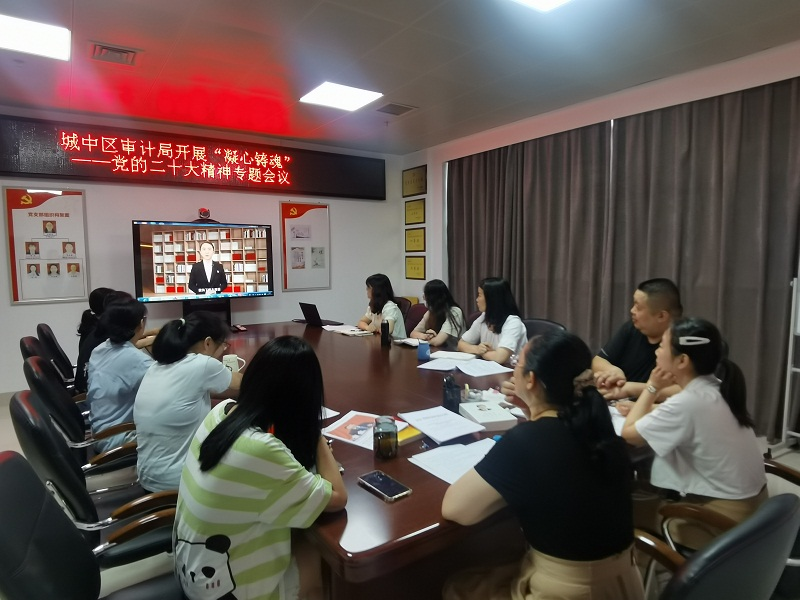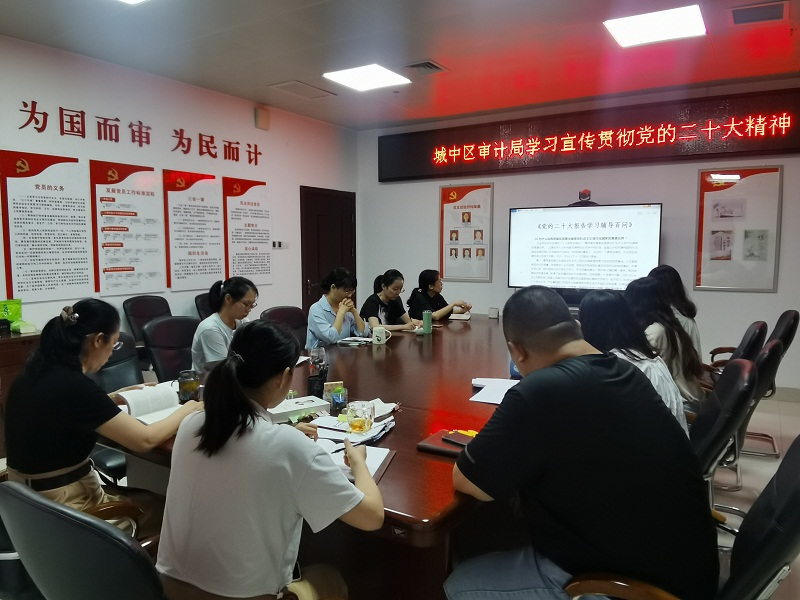 图为城中区审计局党员干部开展学习贯彻党的二十大精神
