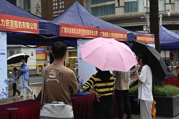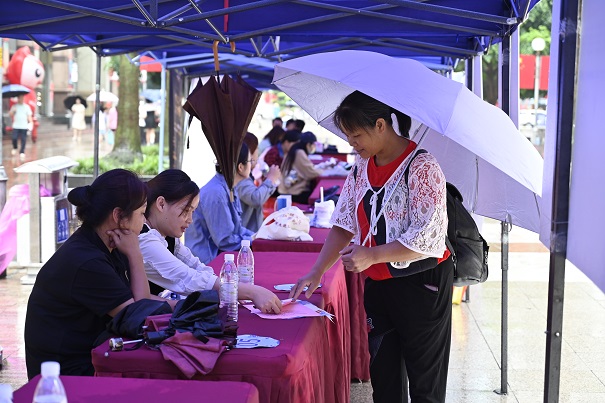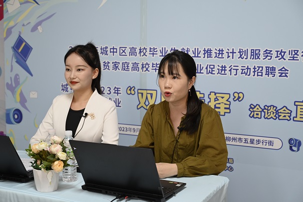 “我是学工商管理专业的,这个行政专员岗位有什么要求?”“欢迎电子类的应届毕业生投递简历!”“家住得近不近呀?明天可以来公司参观参观呀!”招聘活动现场井然有序,企业“摆摊”亮出岗位,求职者“逛街”投递简历。招聘会现场还设置了就业创业政策咨询专区,提供就业、社保、劳动保障等咨询服务,帮助求职者了解现行就业政策,树立正确的择业观。同时,“柳州市人才新政2.0政策”和“高校毕业生灵活就业社会保险补贴、首次创业补贴”等多项政策解读在直播间同步进行,8家企业HR带着公司简介、岗位详情轮番进入直播间,与求职者连麦交流招聘要求、薪资待遇等信息,当天直播共吸引约15万人次观看。