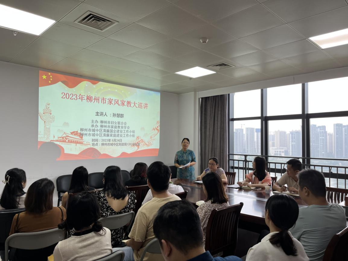 活动邀请区妇联孙慧群老师以《培育好家风 建设好家庭》为主题,为国有企业干部职工进行宣讲。孙老师运用通俗易懂的语言,旁征博引,讲述家庭、家教、家风的重要性,阐述正确的家庭育儿观及良好家风建设的思想理念,引导企业干部职工将“以清为美、以廉为荣”作为价值取向和内心自觉,树立家风好、作风实的良好意识,在今后的工作中从自身做起,从家庭抓起,以“小家”带“大家”,弘扬家庭美德,廉洁修身、廉洁齐家、廉洁从业,不断强化自身家庭、家教、家风建设,营造以好家风涵养好作风的廉洁氛围,持续深化清廉国企建设。