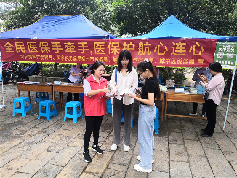 通过社区网格群及学校校医群扩大政策宣传面,提升政策知晓率,及时提醒参保居民尽快缴费,以免影响医保待遇正常享受。持续开展医疗保障政策宣传“进学校”“进社区”“进乡村”等活动,面对面为居民答疑解惑。9月14日,由柳州市医疗保障局、国家税务总局柳州市税务局、城中区医疗保障局、城中区税务局联合开展的主题为“全民医保手牵手,医保护航心连心”医疗保障政策“进学校”宣传活动走进广西科技大学,现场为大学生们就城乡居民医保参保、待遇问题答疑解惑。