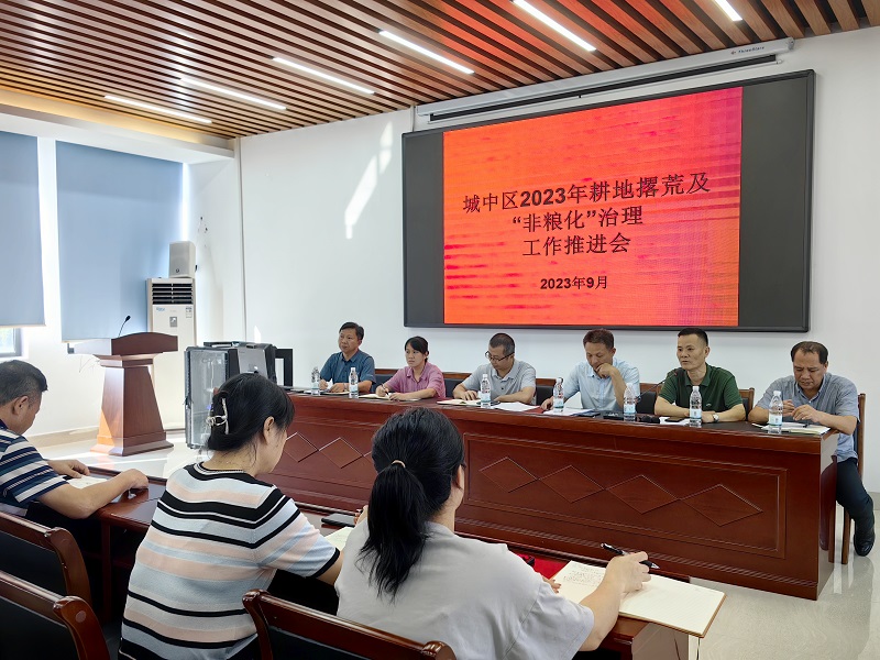 为切实扛起粮食安全政治责任,实行粮食安全党政同责,切实防止耕地撂荒及“非粮化”,确保全区粮食安全。城中区农业农村局于9月20日下午在环江村召开了城中区2023年耕地撂荒及“非粮化”治理工作推进会,参加此次会议的有区农业农村局,区自然资源局,静兰街道办事处,环江村委会,柳东村委会及各小组组长。
