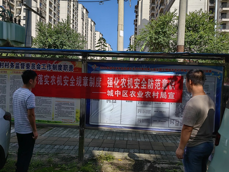 为贯彻落实《柳州市农业农村局关于印发柳州市农机安全生产重大事故隐患专项排查整治 2023 行动工作方案的通知》的文件部署要求,为进一步加强秋冬季农机安全生产,确保中秋、国庆节期间城中区农机安全生产形势稳定,确保度过祥和的节日,营造良好的安全氛围。近日,城中区农业农村局组织工作人员先后深入村委会、田间场院、农机作业现场等重点场所开展了农机安全隐患排查治理及节前农机安全专项检查。重点检查拖拉机、联合收机无证驾驶、无牌作业等行为,排查各类农业机械的安全操作、安全防护措施情况,查看有无存在农机安全事故隐患,对检查中发现的安全隐患,加强追踪监管,持续跟进变型拖拉机清零整治,督促到期农机及时注销,拆解报废,并告知禁止通行。