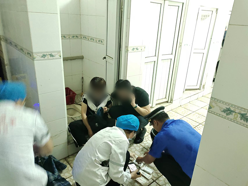 在公厕中,发现了一名靠墙跌坐的中年女子,正是求助者的母亲。女子双眼无神,意识模糊,对外界的声音没有反应,医护人员第一时间展开处置。期间,城管队员在厕所里的一个垃圾桶里找到了5个空的药品包装盒,并告诉了医护人员,方便医护人员对症施救。