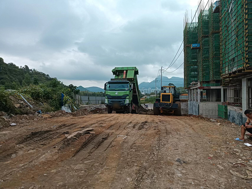 在工地内,执法人员还发现一辆渣土车正在倾倒渣土,于是上前叫停司机的动作,并找到工地施工单位询问情况。该工地负责人解释说,因路网施工,工地原大门无法使用,于是请来渣土车运土回填,抢修一条临时内部道路,以方便运输施工材料。而为赶时间,也没有去办理运土回填相关的审批手续。