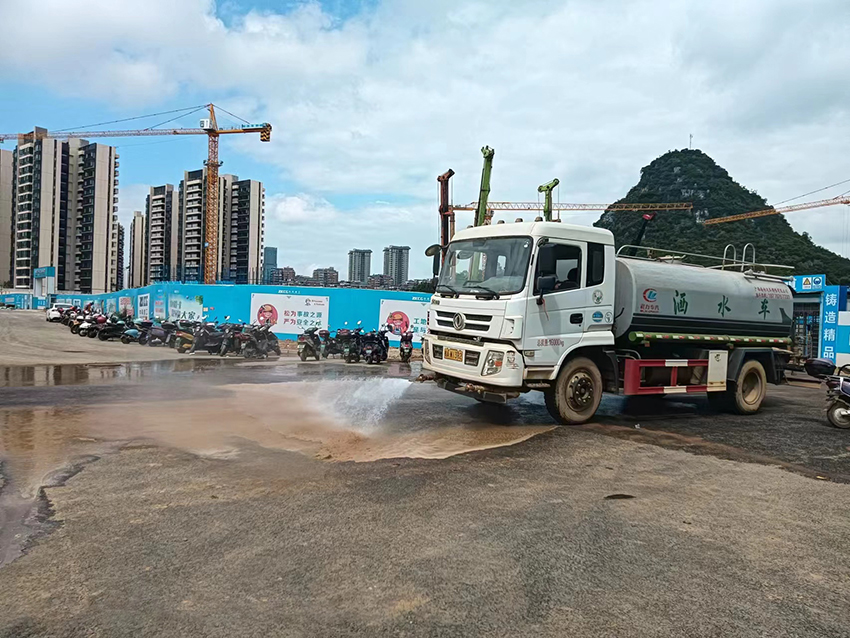 当事工地承认了错误,并立即请来水车对路面进行了冲洗。
