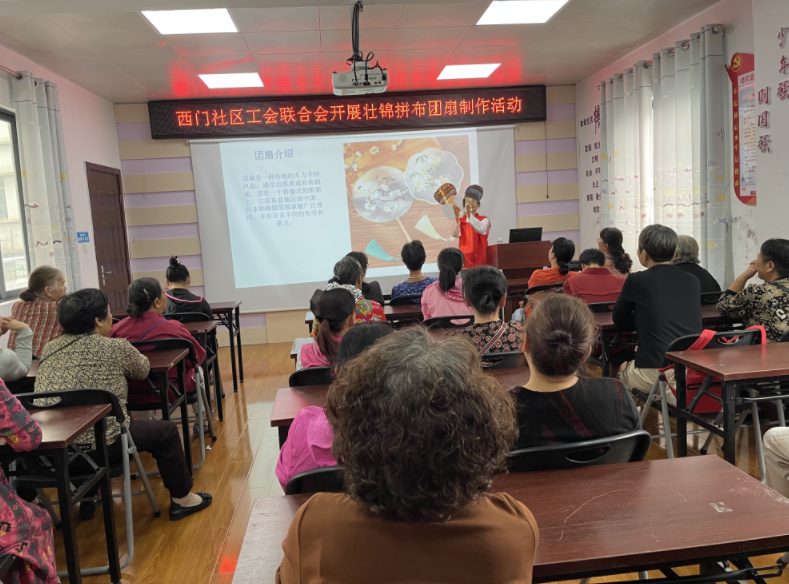 (中南街道工会讯 通讯员吴逸萍报道、摄影)近日,西门社区工会联合会为进一步营造社区的和谐氛围,提升群众的幸福感,开展了壮锦团扇制作活动。