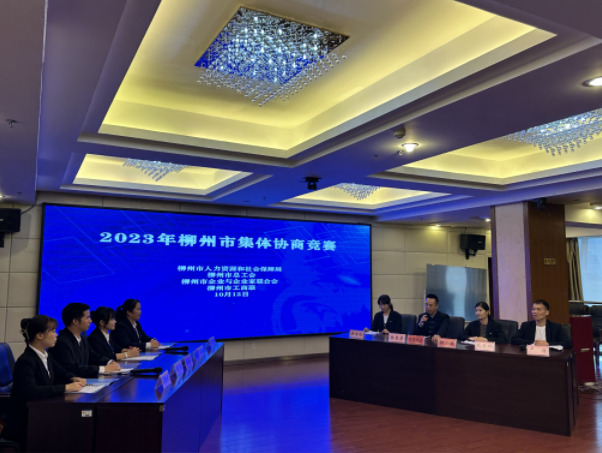 (城中区总工会讯 通讯员杨丹凤报道、摄影)为进一步加强全市集体协商人才队伍建设,提高协调劳动关系能力,促进集体协商工作和劳动关系和谐稳定,柳州市协调劳动关系三方于 10 月11日至12日在柳州市总工会举办 2023 年柳州市集体协商工作培训班暨集体协商竞赛。