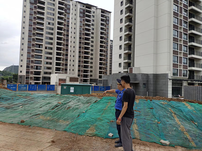此外,执法人员在晨路华一新建小区也发现了同样情况的黄泥裸露现象,责令施工单位进即采取防尘措施进行了整改。