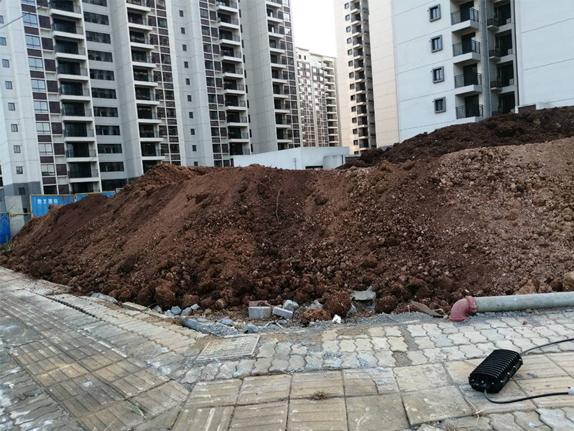 10月6日上午,城管执法人员马鹿山路和太子山路的交汇处看到,路边堆放了大量黄泥堆,目测有百余平方米。既没有覆盖防尘网,也没有设置围挡。