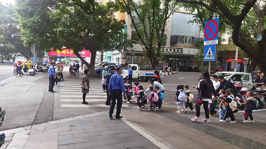 由于解放北路车辆来往众多,孩子们人数又有四五十个之多,担心带队的老师们忙不过来,城管队员立即决定暂时停下整治工作,护送孩子们先过马路。