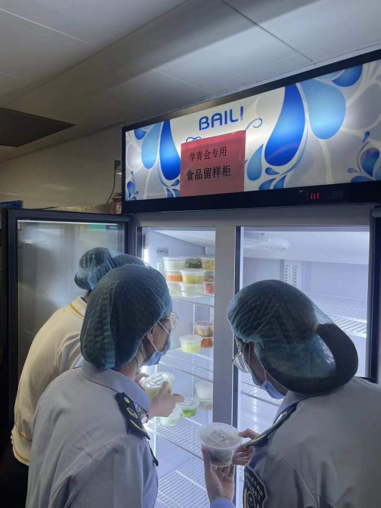 三是密切监控食品操作加工。市场监督管理驻点人员每天对从业人员和厨房设施设备的卫生、食品加工操作过程、食品留样是否符合食品安全规范等方面进行定时巡查。全力保障每一环节食品安全到位。为检测餐饮具的清洗消毒的完成情况,保障人员每天随机抽取餐饮具,开展阴离子残留和表面洁净度快速检测。