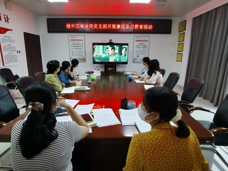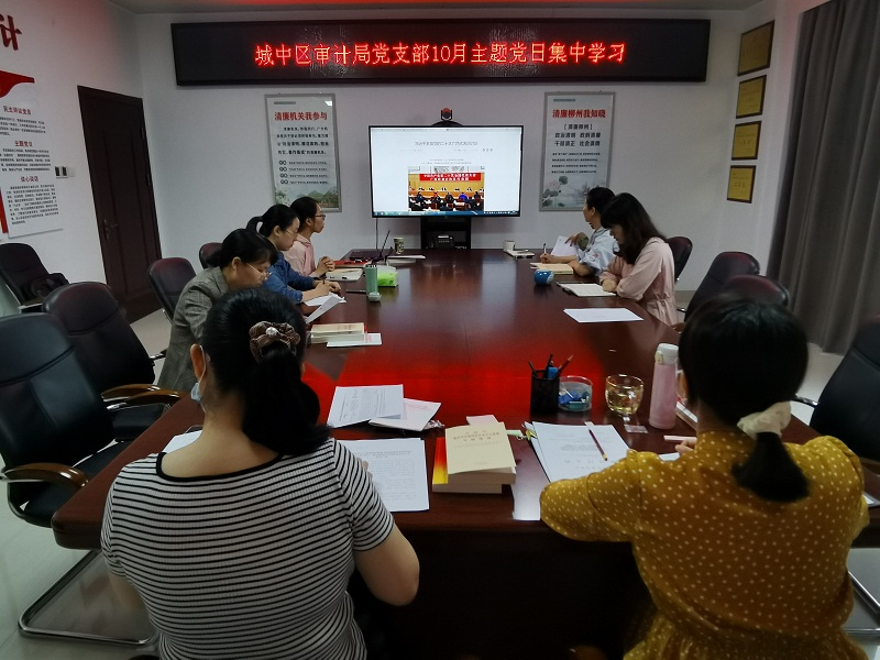 图为城中区审计局党员干部开展主题党日集中学习活动