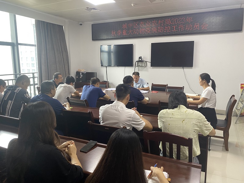 9月初城中区农业农村局召开2023年秋季重大动物疫病防控工作动员会,提高工作人员的动物疫病防控工作意识,强化动物疫病防控工作态度,梳理防控工作重点难点,确保按时完成辖区秋季重大动物疫病防控工作。