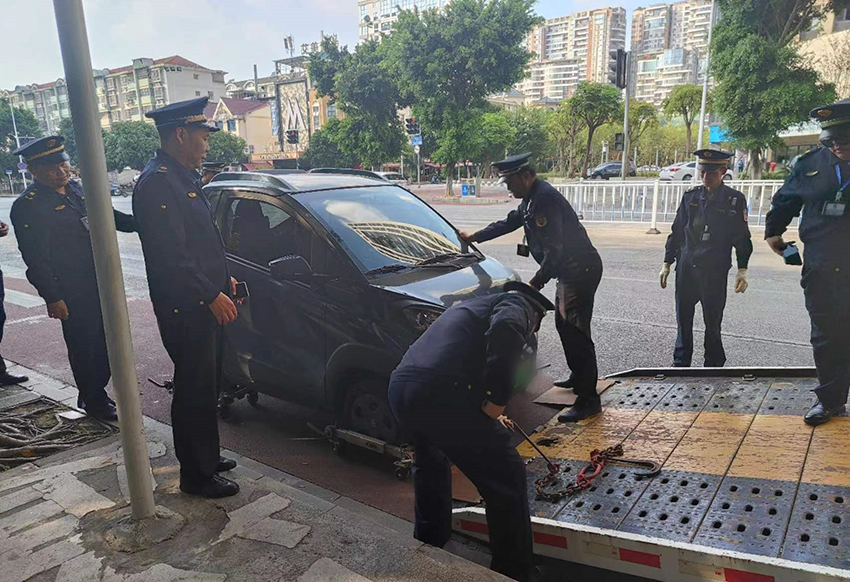 (城中区执法局讯 通讯员邓湖广报道)11月3日,一辆有14次违停记录的“小E”被城中区城管执法部门查处。车主被处以2100元行政罚款。