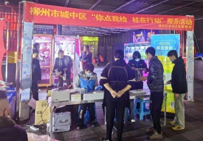 城中区风情港便民夜市因不少消费者推荐点评而爆红,已经成为大众尤其是外来旅游者的必游打卡点。为加强食品安全监管,有效预防食物中毒及食源性疾病的发生,保障人民群众的饮食安全,城中区市场监管局于2023年11月14日在城中区风情港便民夜市开展“你点我检 桂在行动”服务活动。