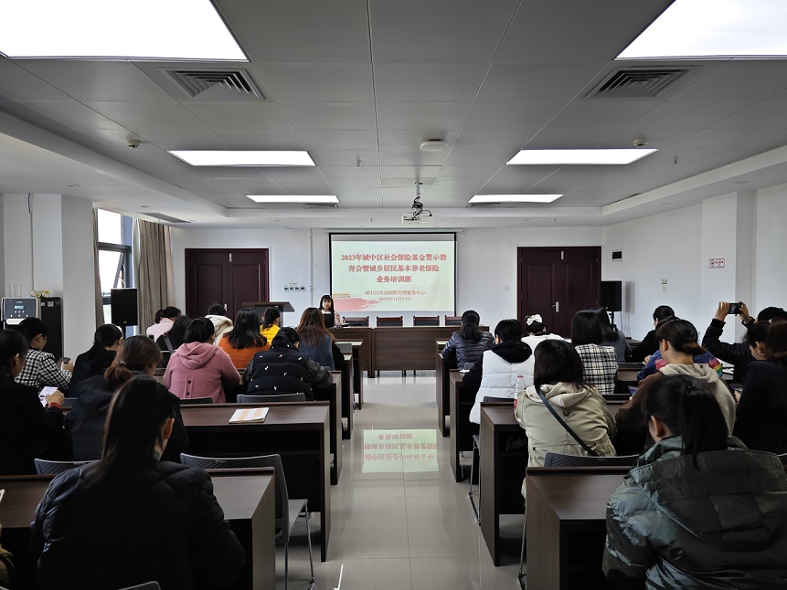 培训现场,首先组织集中观看《社保警示教育专题片》,以案为戒、以案示警,提促经办人员加强维护社保基金安全的法治意识和底线思维。接着城中区劳动保障管理服务中心业务骨干对《社会保险经办条例》的内容进行展开解读,从适用范围、经办机构职责、便民利民要求,监督管理举措和法律责任等方面,进一步明确社保经办工作面临的新形势、新任务和新要求,增强政策应用能力。最后,围绕城乡居民基本养老保险参保登记、中断补缴、特殊人群政府代缴、关系转移等内容进行实例剖析,还设置了集中讨论、互动交流、现场答疑环节,集中解决工作中遇到的难点问题,规范各项经办业务的操作流程,提升经办服务质量。