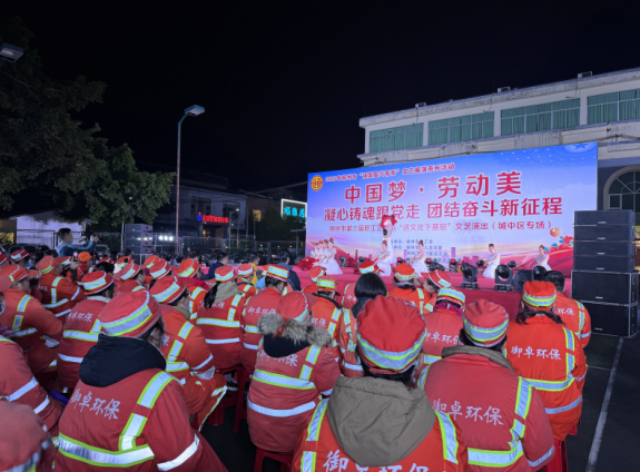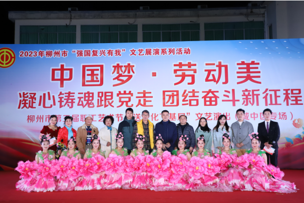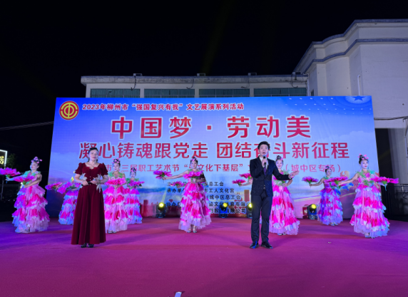 (城中区总工会讯 通讯员刘星辰报道、摄影)为进一步落实柳州市总工会年度重点工作关于开展向基层送文化活动的相关要求,聚焦基层工会和广大职工的文化需求,由柳州市总工会主办,柳州市工人文化宫、柳州市城中区总工会共同承办的2023年“中国梦·劳动美——凝心铸魂跟党走 团结奋进新征程”柳州市职工艺术节“送文化下基层”(城中区专场)文艺演出活动,于11月14日晚走进柳柴赏石文化产业园,为200余名基层职工送上了一场精彩的文艺演出。