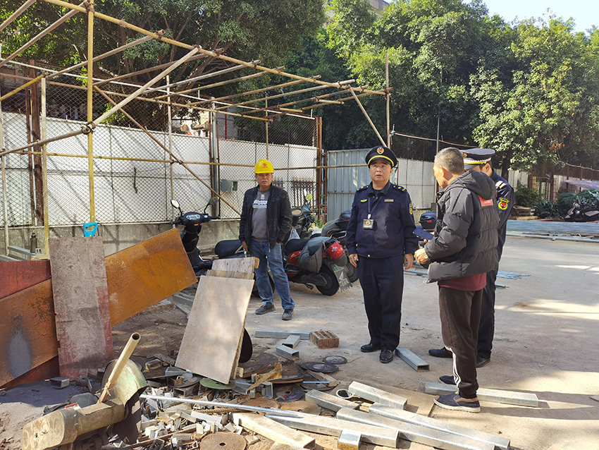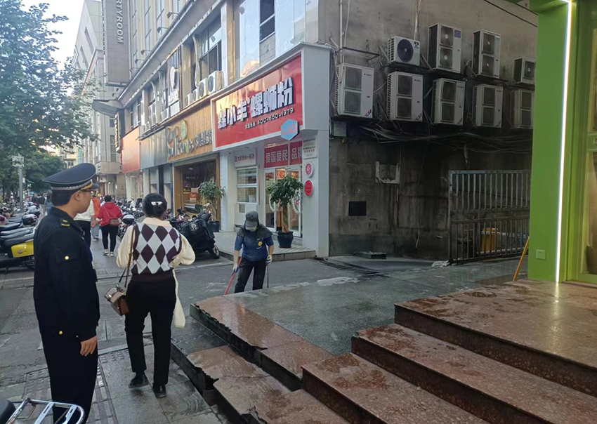 无独有偶,当天五星商业步行街一间娱乐场所的装修工程也被市民投诉施工扬尘。执法人员现场调查发现是因为,施工人员没有做好降尘措施,导致尘土飞扬。在执法人员的要求下,施工人员立即进行了整改。