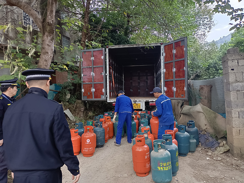 随后,执法人员对查获的53个燃气瓶全部依法予以暂扣,拔除了这个隐藏在村民身边的安全隐患。