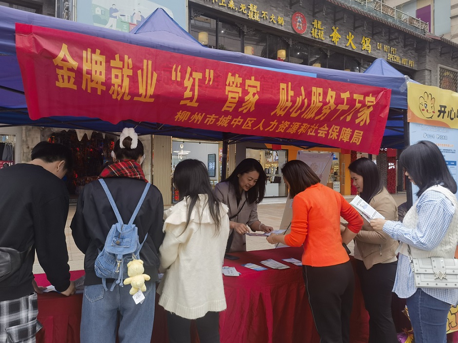 冬日暖阳,微风轻拂。12月9日,2023年柳州市城中区稳主体促就业惠民生攻坚行动离校未就业高校毕业生专场招聘会在城中区五星商业步行街顺利举办。近50家企业入场,暖心送岗234个,吸引800余人踊跃应聘,其中高校毕业生156人,现场人潮涌动,气氛热烈。