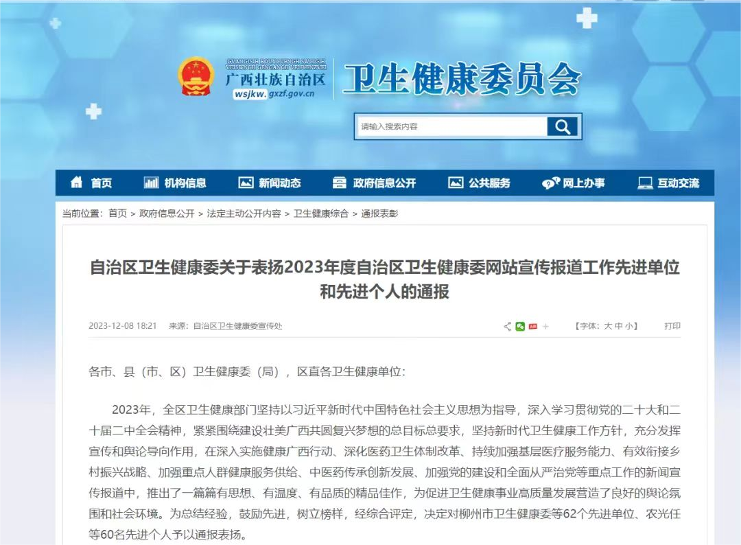 日前,广西壮族自治区卫生健康委通报表扬2023年度自治区卫生健康委网站宣传报道工作先进单位和先进个人,共有62个先进单位和60名先进个人表现优异喜获嘉奖!