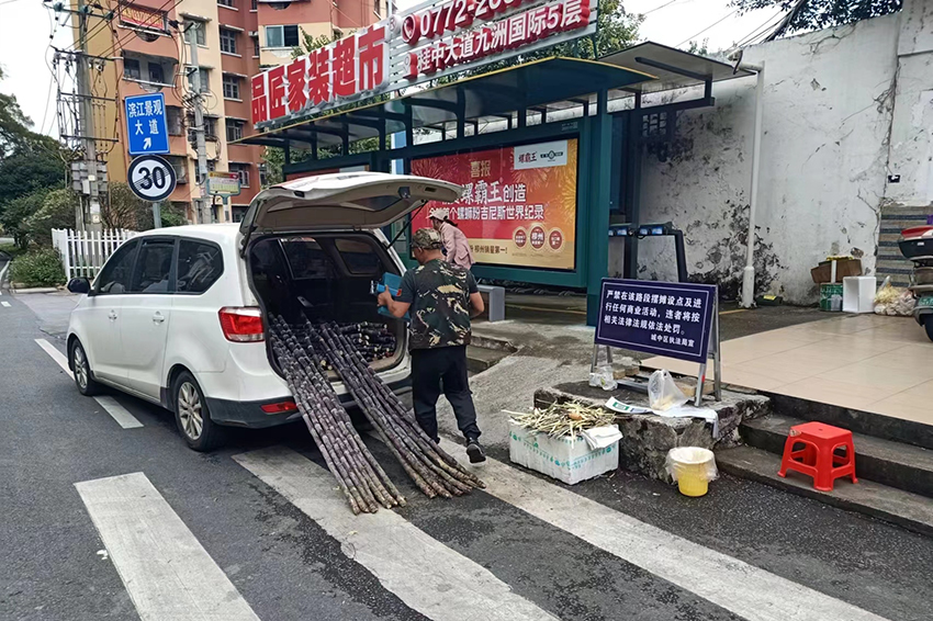 (城中区执法局讯 通讯员邓湖广报道)12月4日中午,有市民向城管执法部门投诉称,桂柳路三门江公园附近路段,有多辆面包车占道摆卖,影响道路通行,希望执法人员及时查处。