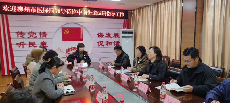 12月20日下午,柳州市医疗保障局党组成员、副局长廖明妮、市医保局办公室主任李程、市医疗保障事业管理中心副主任程洁等一行6人,到城中区中南街道,就“十百千万工程”的完成进度、2024年度基本医疗保险参保扩面缴费工作推进情况进行调研。