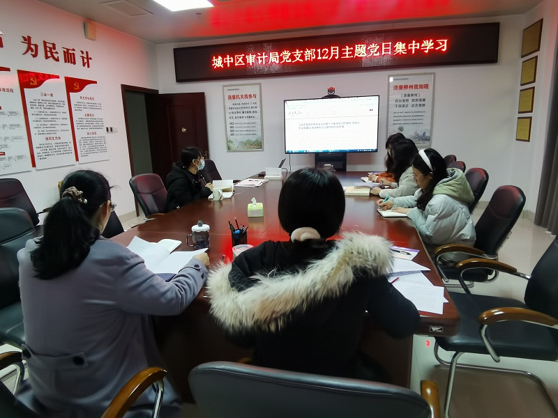 图为城中区审计局党支部党员干部开展主题党日集中学习
