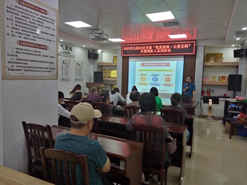 活动开始,首先由柳州红十字会的心理医生带来心理知识讲座,通俗易懂的演讲,给现场的残疾人及亲友普及了常见的心理问题和预防、缓解方法;通过开展小游戏,活跃了现场气氛,打开了现场人员的心扉。