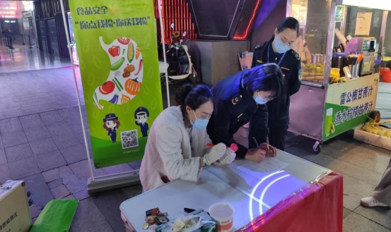 此次活动在现场设立食品安全咨询服务台,同时开展“你点我检,你送我检”活动,让群众更直接地参与到食品安全监管中来。对于群众送来的奶茶、牛肉、鱿鱼、韭菜、草莓等指定检测食材,工作人员全部进行现场快检,最终结果均为阴性(合格)。过程中监管人员还向群众开展食品安全知识科普宣传,进一步提高了公众对食品安全的认识和参与度。
