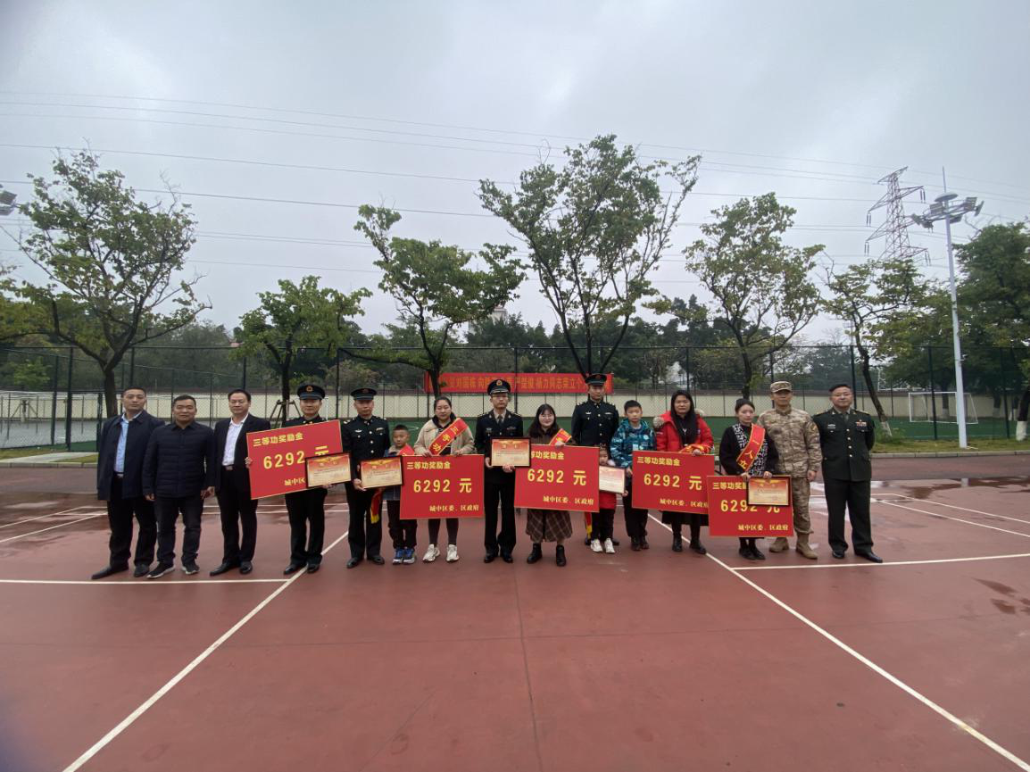 区人武部政委于晓东宣布了奖励通令,一级上士刘国栋作为立功代表进行发言,与会领导为立功官兵及家属佩戴绶带、颁发喜报。