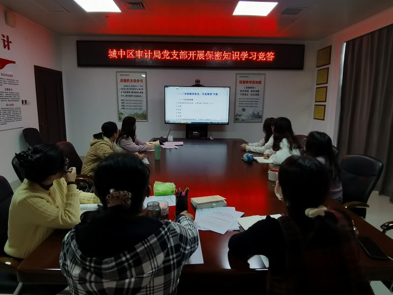(城中区审计局讯 通讯员封帆报道)为深入贯彻习近平总书记关于做好保密工作重要指示精神,强化党员干部新时代保密工作的责任意识和能力本领,营造浓厚的学习氛围,近日,城中区审计局党支部组织党员干部开展保密知识竞答活动。