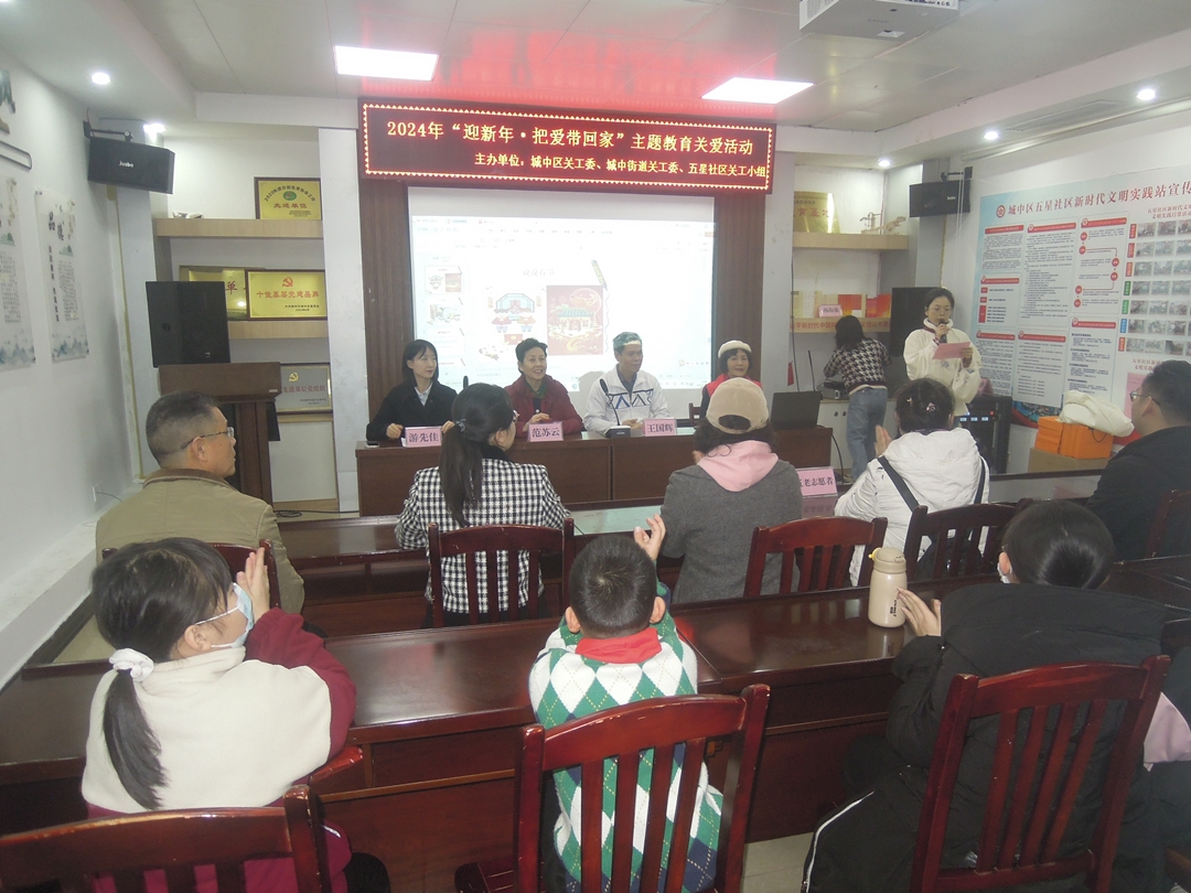 (区关工委办讯 通讯员程中)2月1日,城中区关工委、城中街道关工委和五星社区关工小组,在社区活动室开展“迎新春 把爱带回家”主题教育关爱活动,为辖区青少年和居民群众送去新春的祝福。