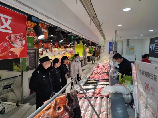为进一步规范肉类市场的经营秩序,保障人民群众的食品安全。2月2日,城中区市场监督管理局联合城中区公安分局、动物防疫中心等相关职能部门,组成联合专项检查组,深入城中区大型超市,联合开展肉类市场专项整治行动。